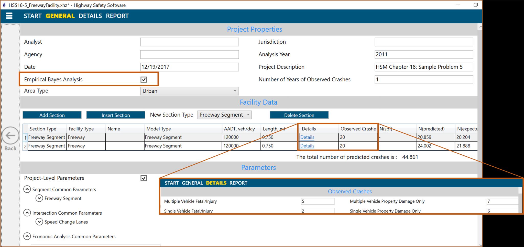 The Highway Safety Software (HSS) comes with a comprehensive user guide to provide a solid reference. Details of inputs and outputs are discussed. Moreover, you can find where the parameters are located to adjust/calibrate the analysis. The user’s guide is in HSS by pressing CTRL+G buttons or accessing through the main menu.