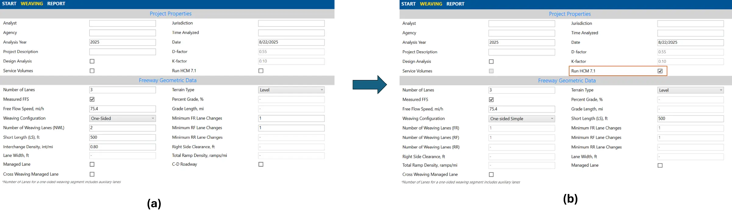 The new methods are available in HCS2025 and versions after that. The new methods can be applied to single-segment analyses in the Freeways module of the Highway Capacity Software.